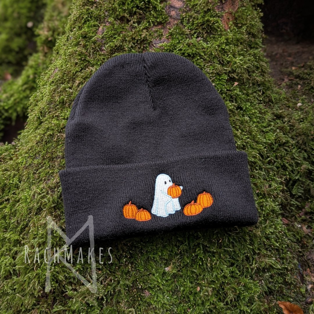This embroidered beanie hat designed by RachMakes is a great way to show your love of ghosties, pumpkins and all things spooky! The perfect treat to spruce up your noggin or the perfect gift for your spookiest friend!