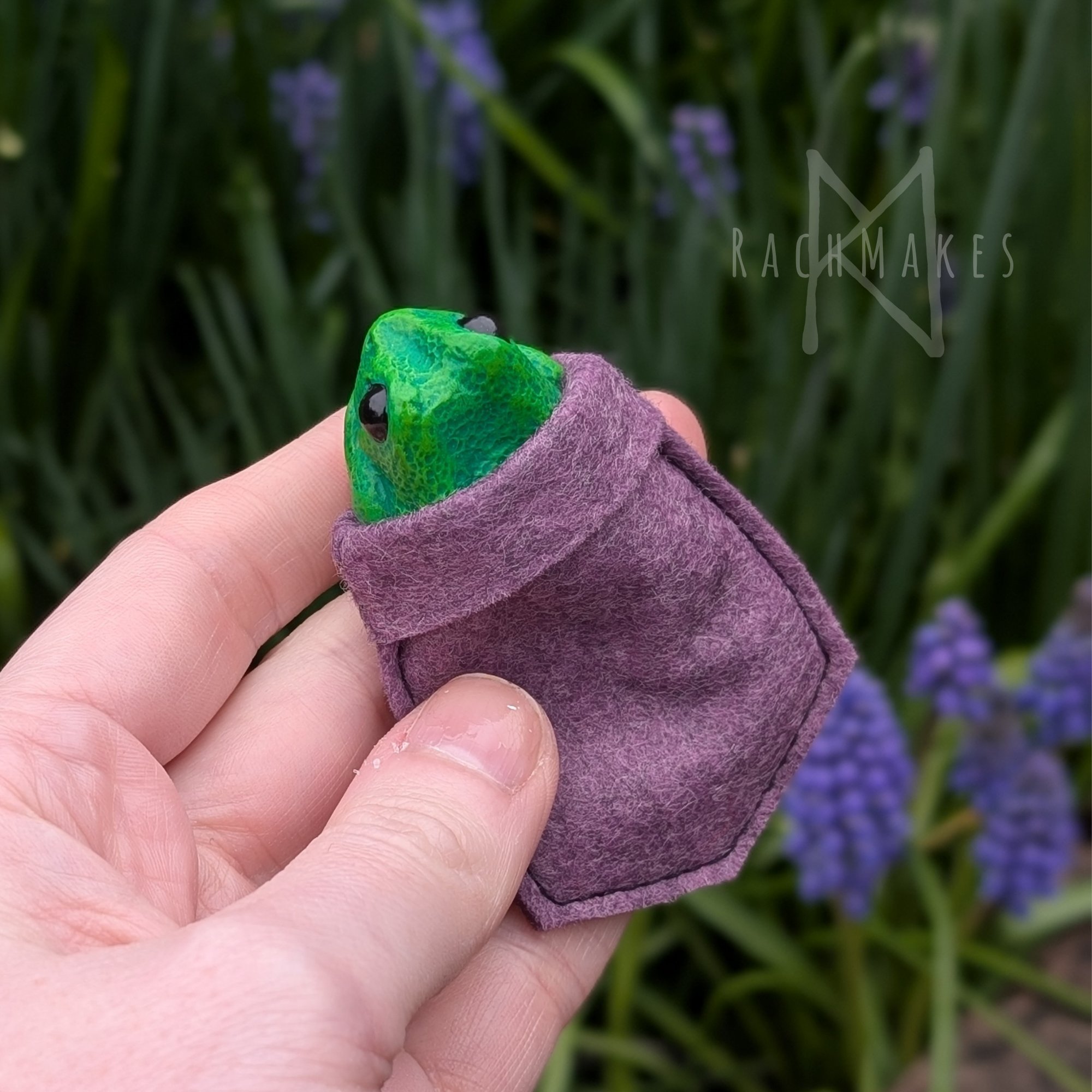 Pocket frogs come with a felt pocket chosen at random, if you have a specific colour request let me know in the notes section and I will see if I have a similar colour in stock.