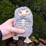 This Skellie has super soft steely grey fur. They stand at around 5 and a half inches tall from foot to horn tip.